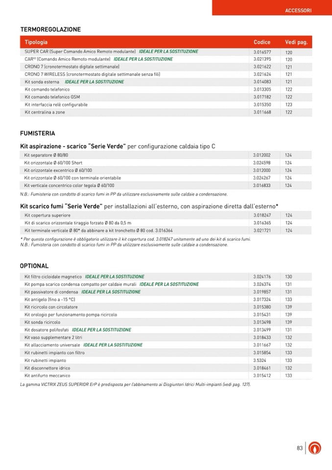 La gamma VICTRIX ZEUS SUPERIOR ErP è predisposta per l’abbinamento ai Disgiuntori Idrici Multi-impianti (vedi pag. 127).