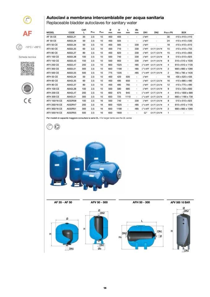Per modelli di capacità maggiore consultare la serie DL / For larger tanks see the DL series