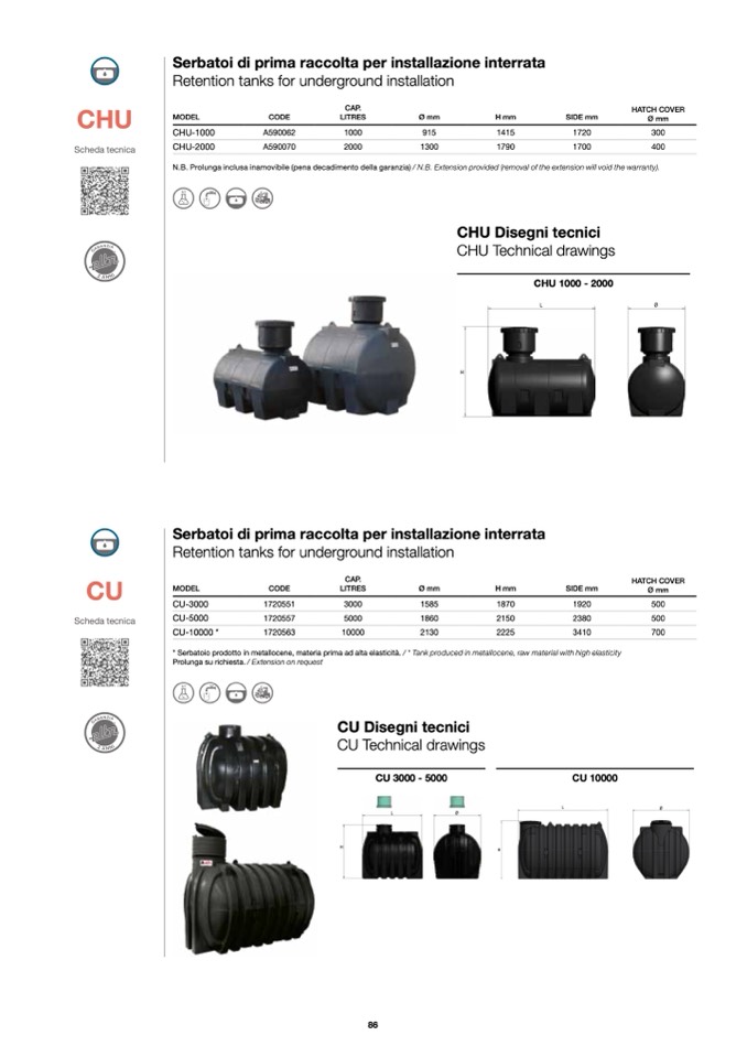 * Serbatoio prodotto in metallocene, materia prima ad alta elasticità. / * Tank produced in metallocene, raw material with high elasticity