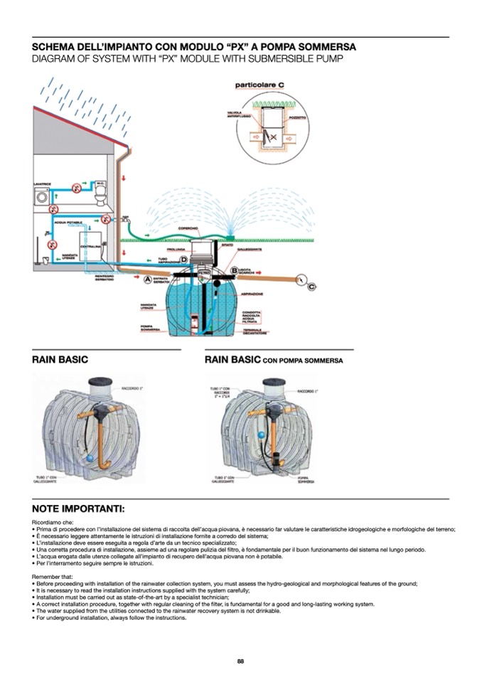 • Before proceeding with installation of the rainwater collection system, you must assess the hydro-geological and morphological features of the ground;