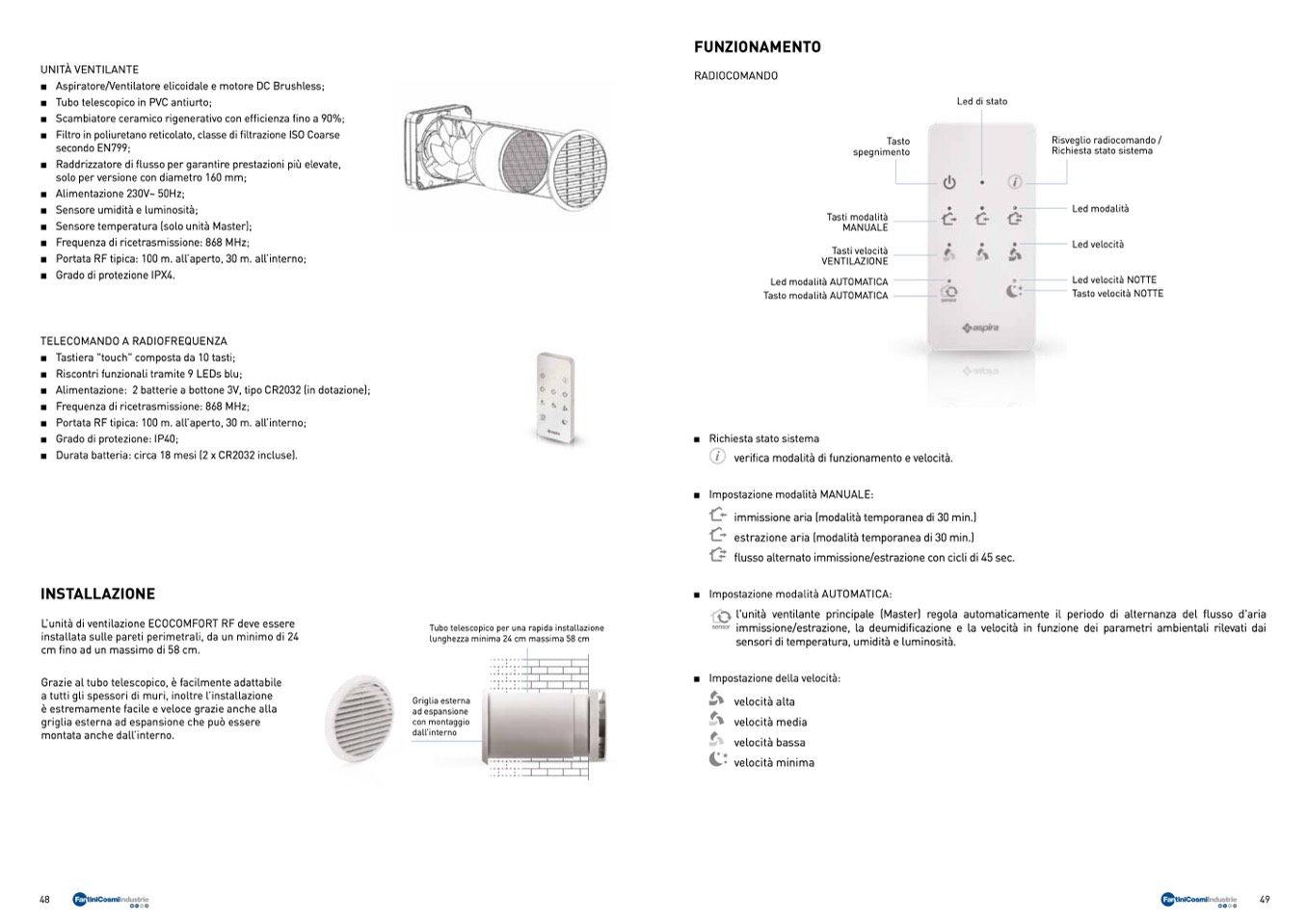 L’unità di ventilazione ECOCOMFORT RF deve essere