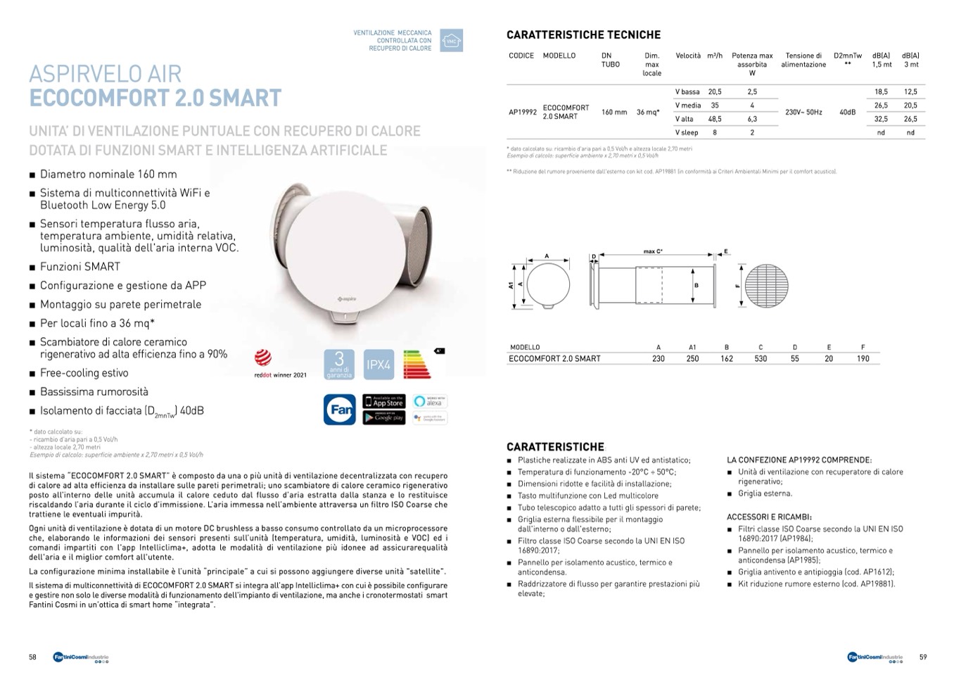 Il sistema “ECOCOMFORT 2.0 SMART” è composto da una o più unità di ventilazione decentralizzata con recupero