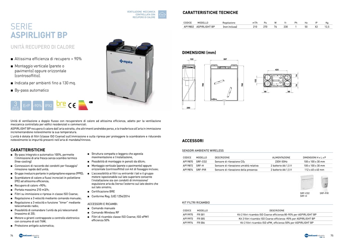 ASPIRLIGHT BP recupera il calore dall'aria estratta, che altrimenti andrebbe perso, e lo trasferisce all’aria in immissione