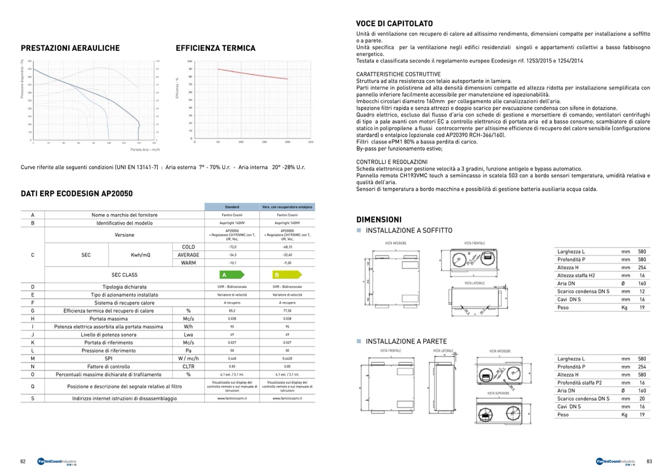 Curve riferite alle seguenti condizioni (UNI EN 13141-7) : Aria esterna 7° - 70% U.r. - Aria interna 20° -28% U.r.