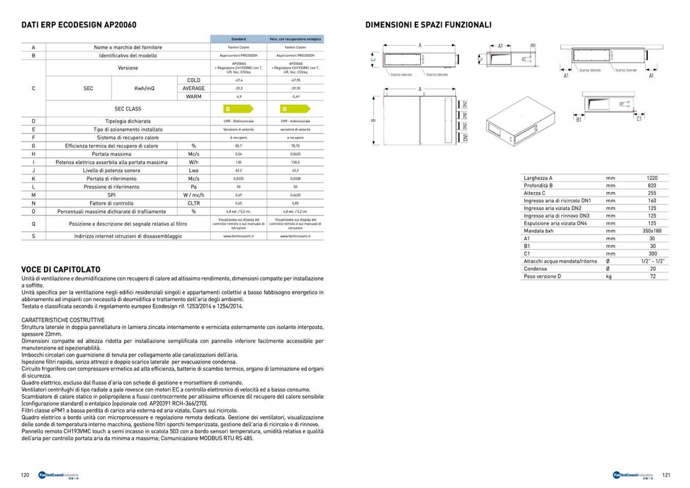 Testata e classificata secondo il regolamento europeo Ecodesign rif. 1253/2014 e 1254/2014.