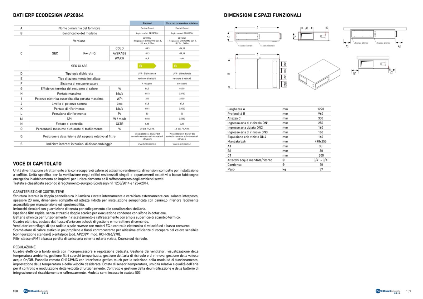 Testata e classificata secondo il regolamento europeo Ecodesign rif. 1253/2014 e 1254/2014.