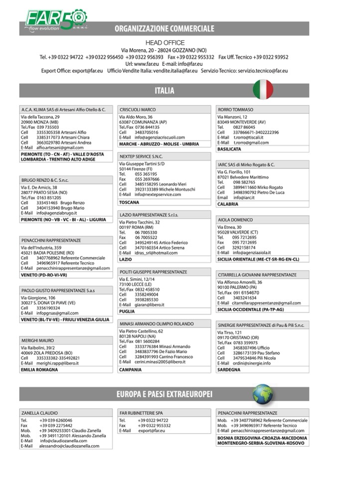 Ufficio Vendite Italia: vendite.italia@far.eu Servizio Tecnico: servizio.tecnico@far.eu