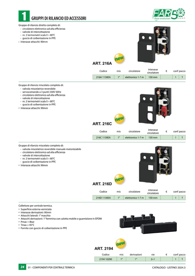 • Attacchi derivazioni: 1” femmina con calotta mobile e guarnizione in EPDM