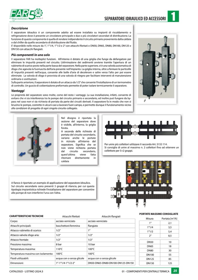 A fianco è riportato un esempio di applicazione del separatore idraulico.