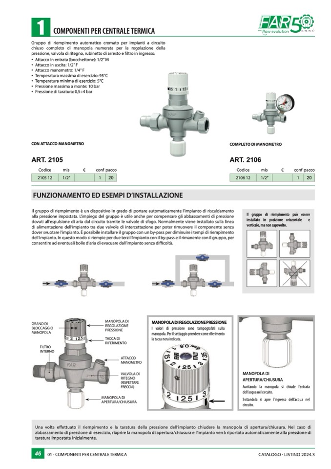pressione, valvola di ritegno, rubinetto di arresto e filtro in ingresso.