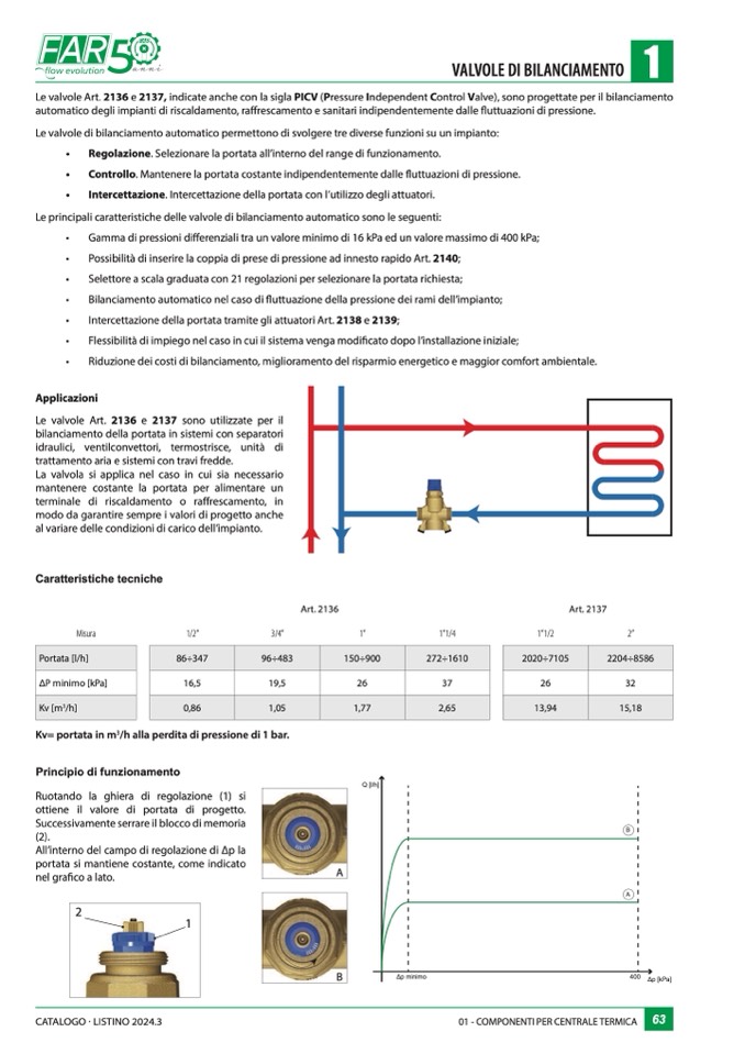 Le valvole Art. 2136 e 2137, indicate anche con la sigla PICV (Pressure Independent Control Valve), sono progettate per il bilanciamento