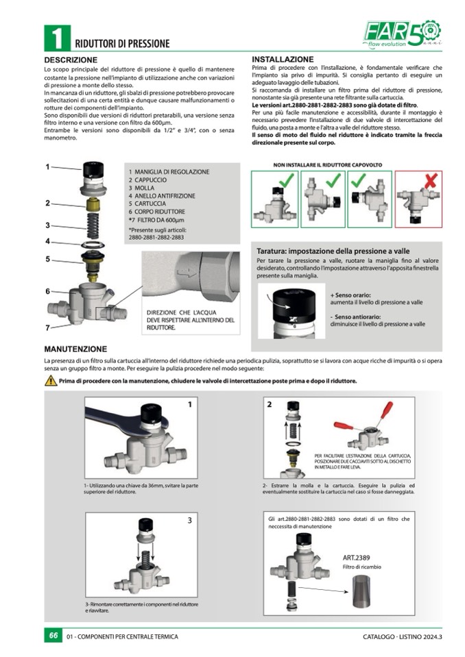 La presenza di un filtro sulla cartuccia all’interno del riduttore richiede una periodica pulizia, soprattutto se si lavora con acque ricche di impurità o si opera