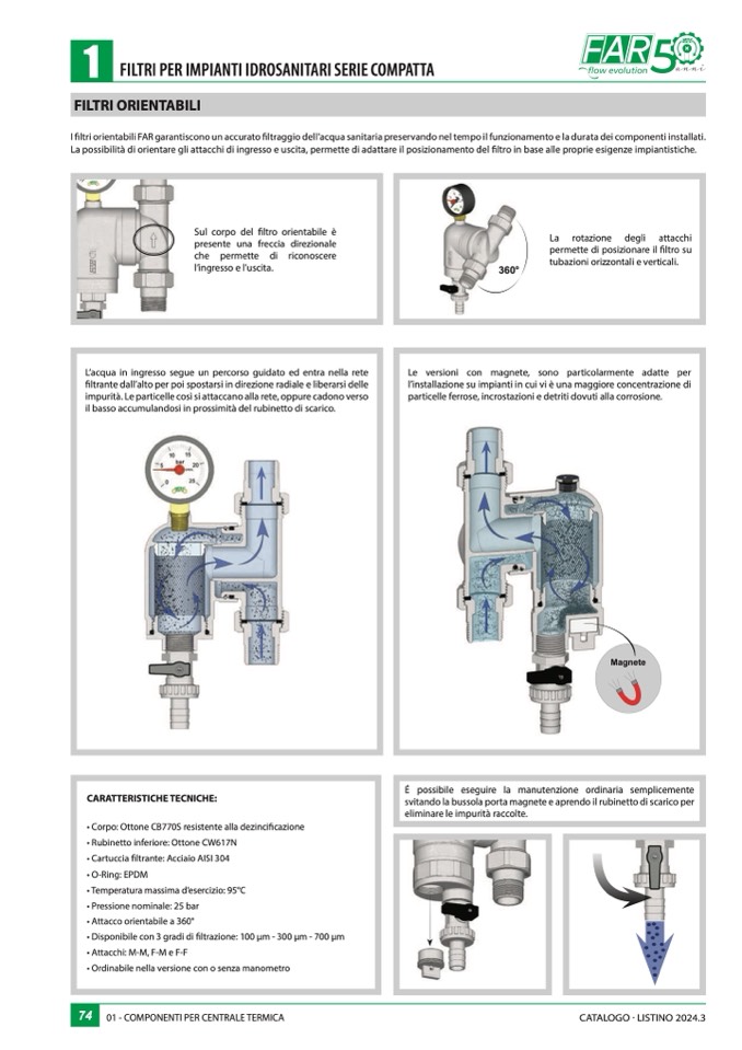 • Disponibile con 3 gradi di filtrazione: 100 μm - 300 μm - 700 μm