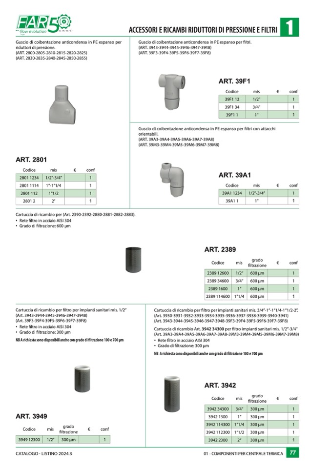 NB A richiesta sono disponibili anche con grado di filtrazione 100 e 700 μm