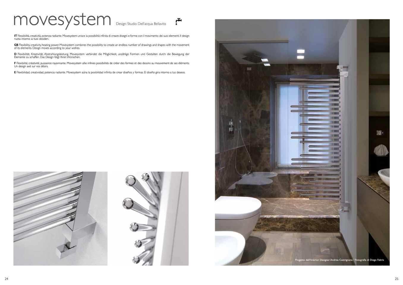 E Flexibilidad, creatividad, potencia radiante. Movesystem aúna la posibilidad infinita de crear diseños y formas. El diseño gira intorno a tus deseos.