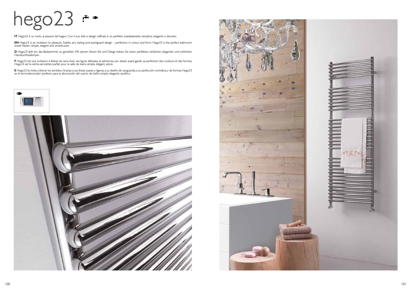 IT Hego23 è un invito al piacere del bagno. Con il suo stile e design raffinati, è un perfetto scaldasalviette: semplice, elegante e discreto.