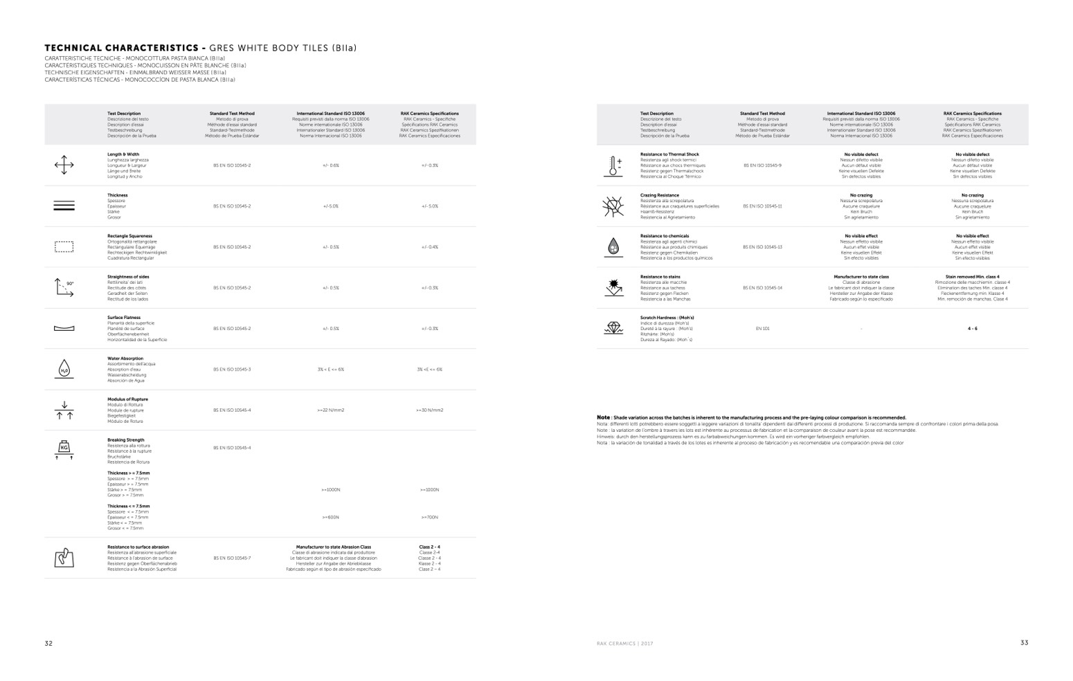 RAK Ceramics Specifications