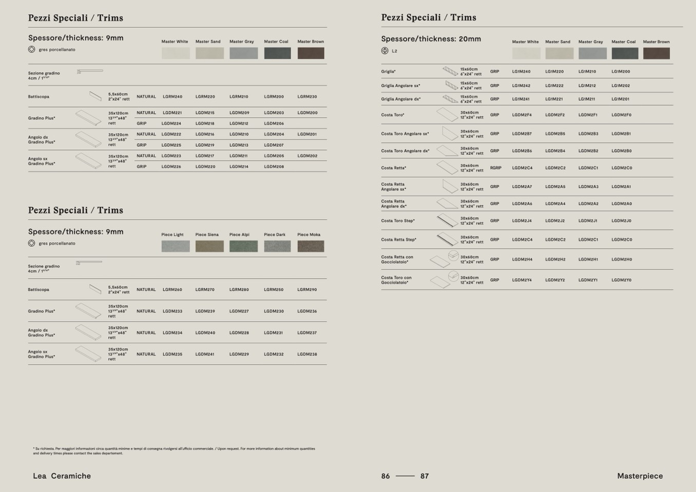 à minime e tempi di consegna rivolgersi all’ufficio commerciale. / Upon request. For more information about minimum quantities