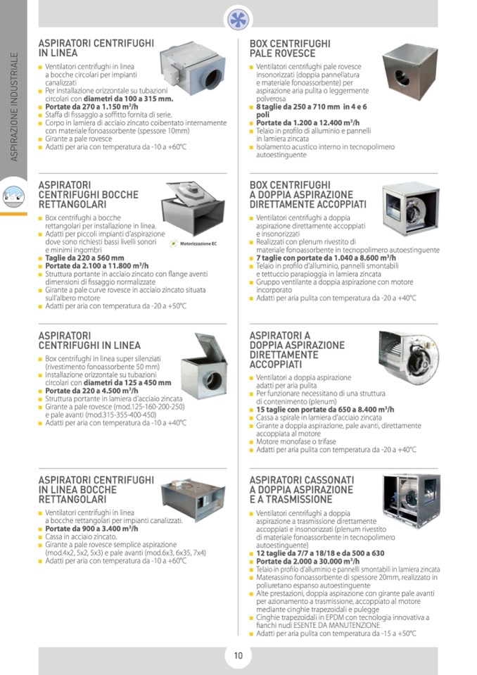 Alte prestazioni, doppia aspirazione con girante pale avanti