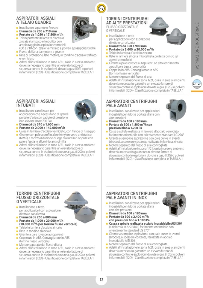 industriali per ridotte portate d’aria con
