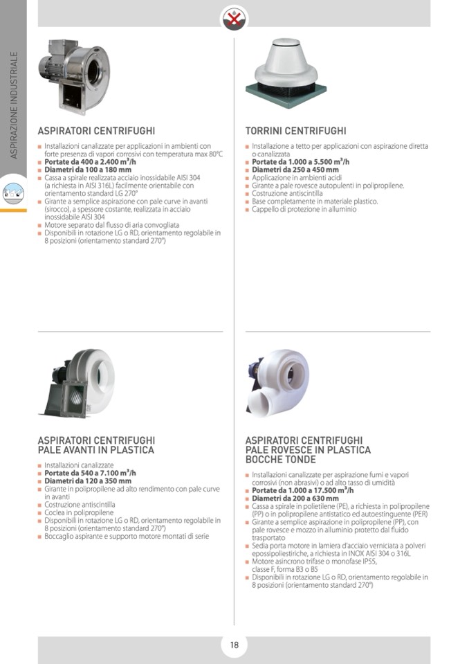 Girante a pale rovesce autopulenti in polipropilene.