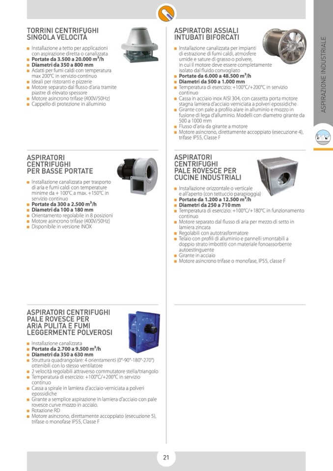 fusione di lega d’alluminio. Modelli con diametro girante da