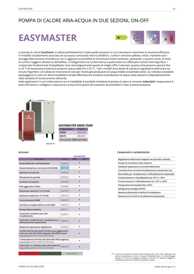 a -20 °C di temperatura esterna e produrre acqua calda fino a 55 °C. Tutti i modelli sono dotati di valvola di regolazione elettronica sul