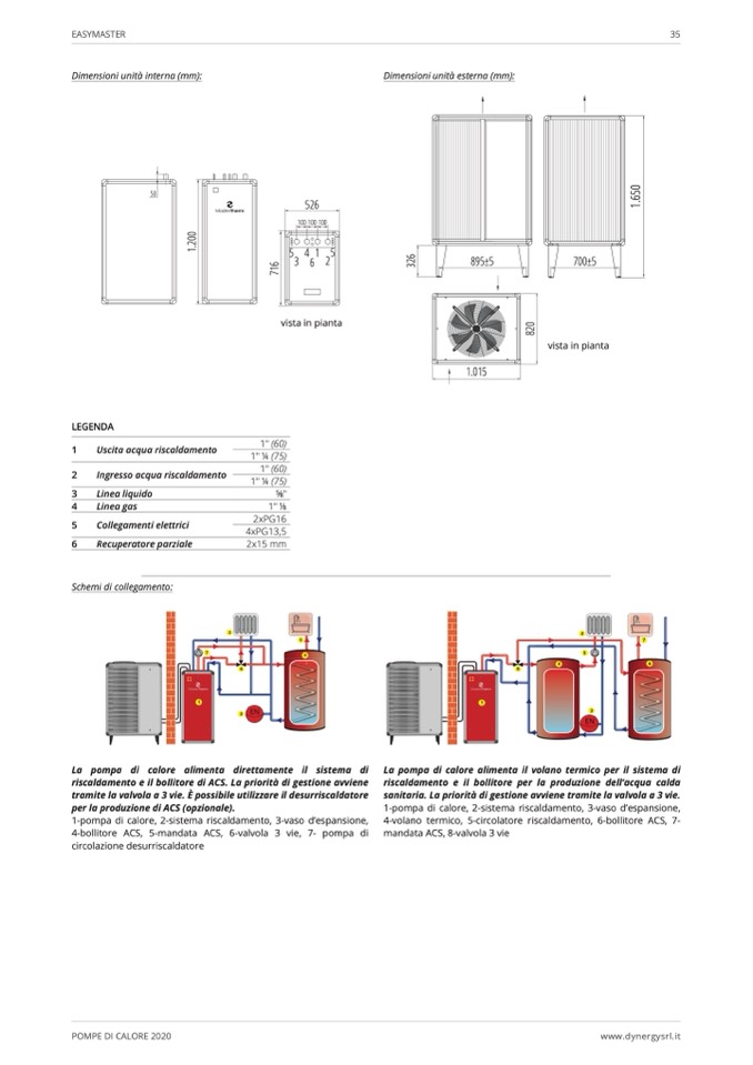 1-pompa di calore, 2-sistema riscaldamento, 3-vaso d’espansione,