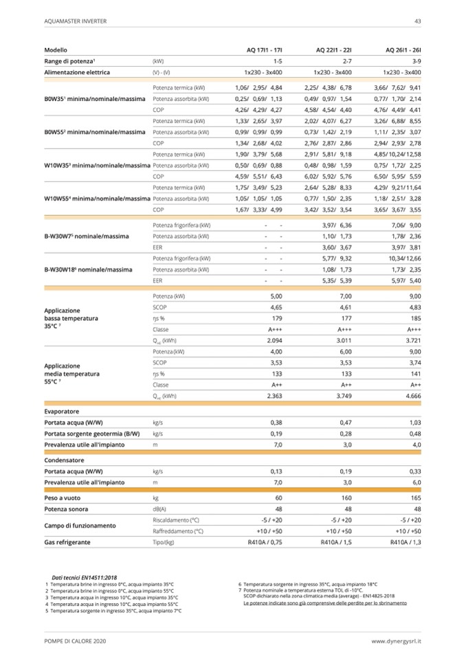 1 Temperatura brine in ingresso 0°C, acqua impianto 35°C