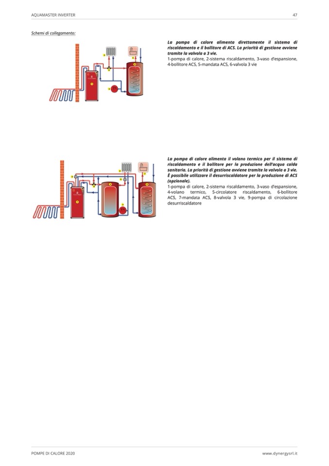 1-pompa di calore, 2-sistema riscaldamento, 3-vaso d’espansione,