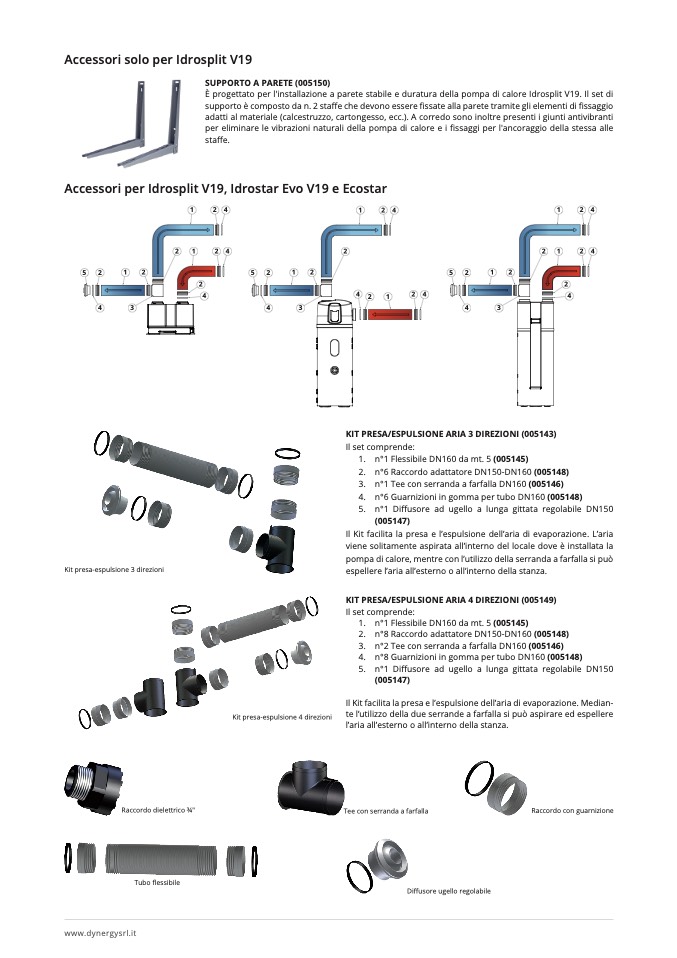È progettato per l'installazione a parete stabile e duratura della pompa di calore Idrosplit V19. Il set di