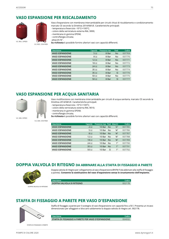 Doppia valvola di ritegno per collegamento al vaso d’espansione Ø3⁄4”M-F (da abbinare alla staffa di fissaggio