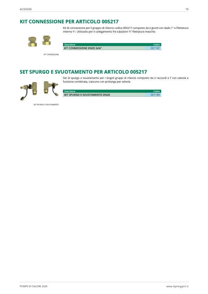 Kit di connessione per il gruppo di rilancio codice 005217 composto da 2 giunti con dado 1" e filettatura