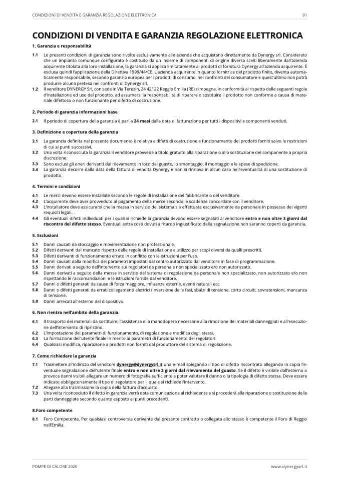 1.1 Le presenti condizioni di garanzia sono rivolte esclusivamente alle aziende che acquistano direttamente da Dynergy srl. Considerato
