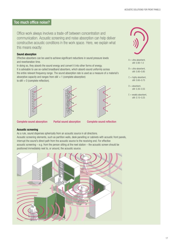 acoustic screening – e.g. from the person sitting at the next station – the acoustic screen should be