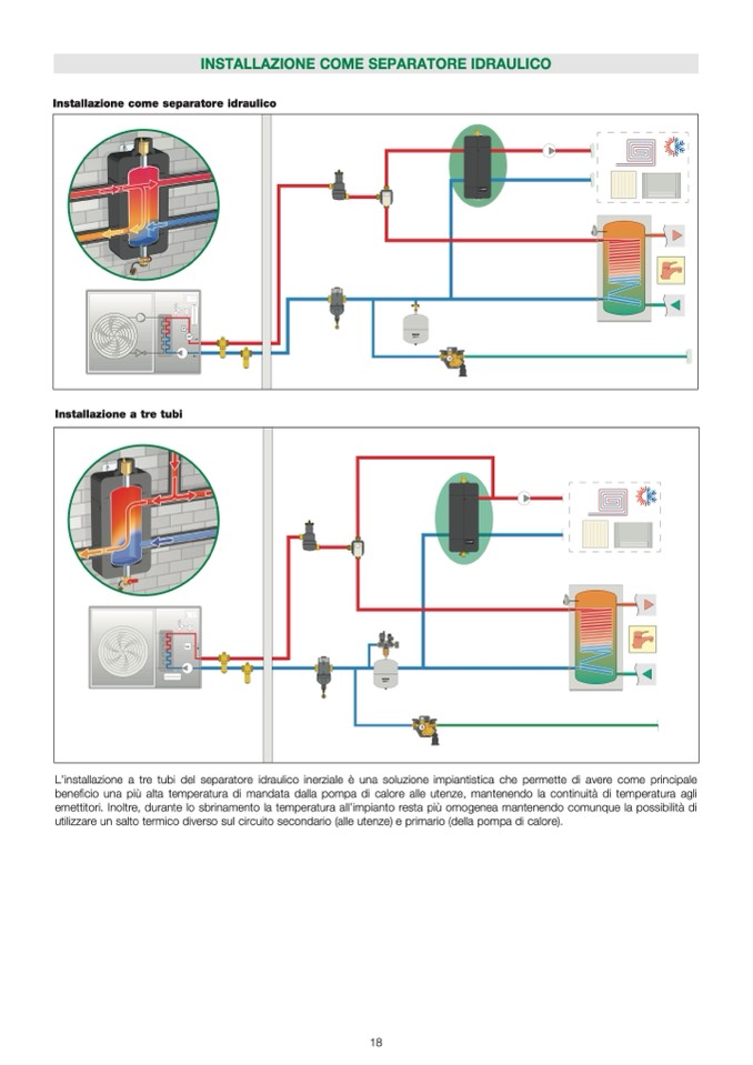 L’installazione a tre tubi del separatore idraulico inerziale è una soluzione impiantistica che permette di avere come principal