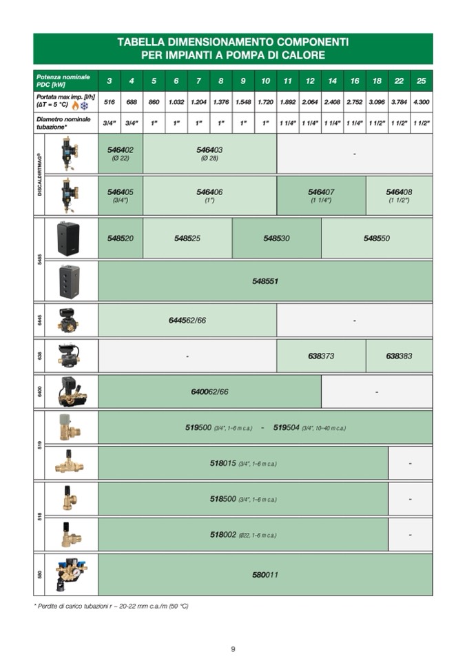 * Perdite di carico tubazioni r ~ 20-22 mm c.a./m (50 °C