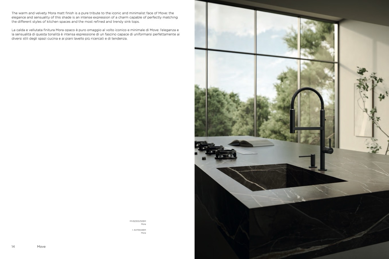 La calda e vellutata finitura Mora opaco è puro omaggio al volto iconico e minimale di Move: l’eleganza e