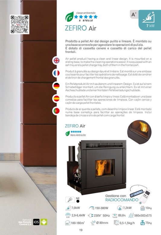 Prodotto a pellet Air dal design pulito e lineare. È montato su