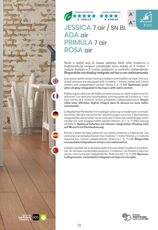 Low power pellet stoves having a modern and traditional style.The can-
