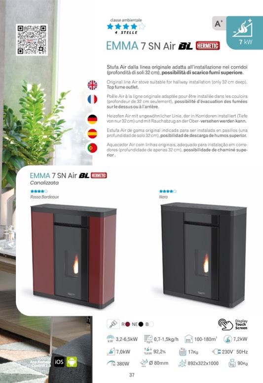 Stufa Air dalla linea originale adatta all’installazione nei corridoi