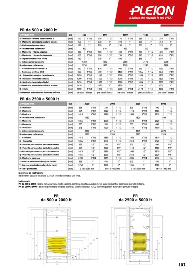 PR da 500 a 2000 - Isolato con poliuretano rigido a calotte, esente da clorofluorocarburi (CFC), autoestinguente e asportabile per tutte le taglie.