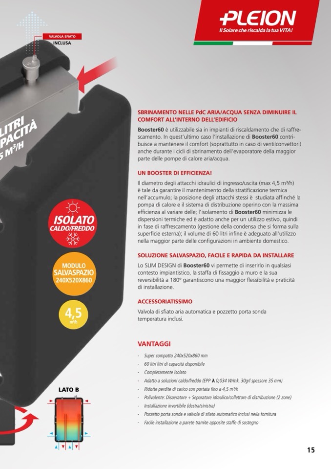 Booster60 è utilizzabile sia in impianti di riscaldamento che di raffre-