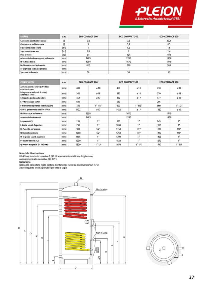 Il bolllitore è costruito in acciaio S 235 JR. Internamente vetri