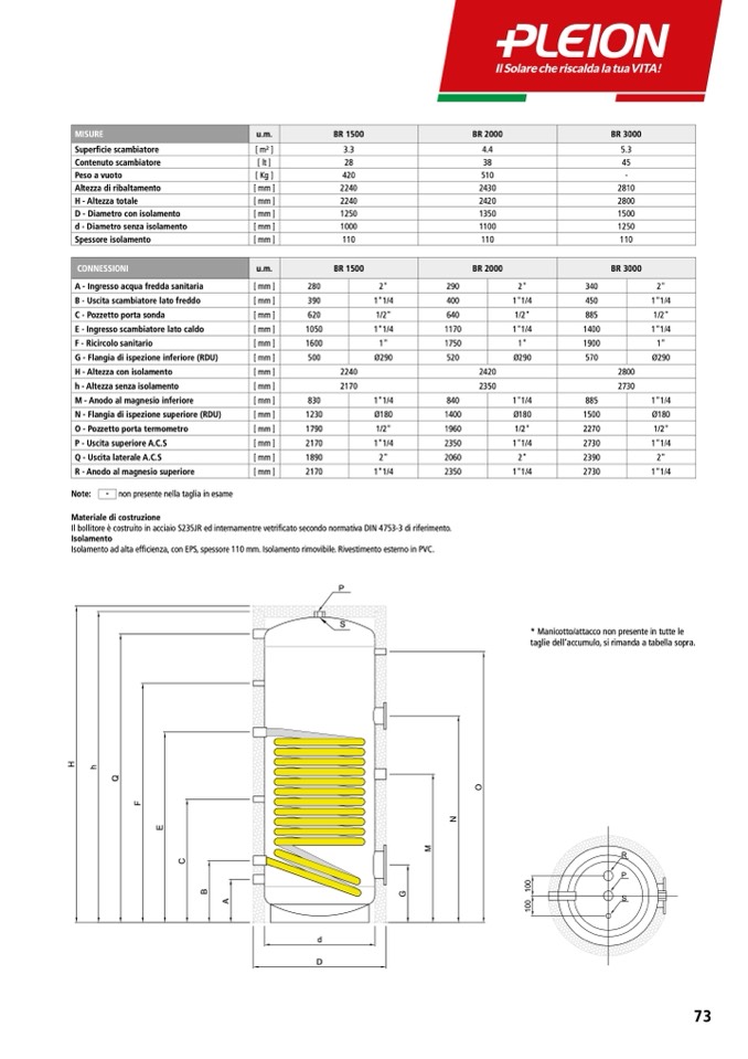 Il bollitore è costruito in acciaio S235JR ed internamentre vetri