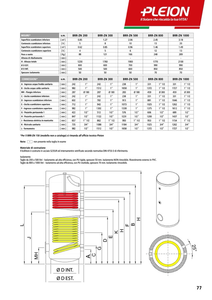 Taglie da 800 a 1000 litri - Isolamento ad alta ef