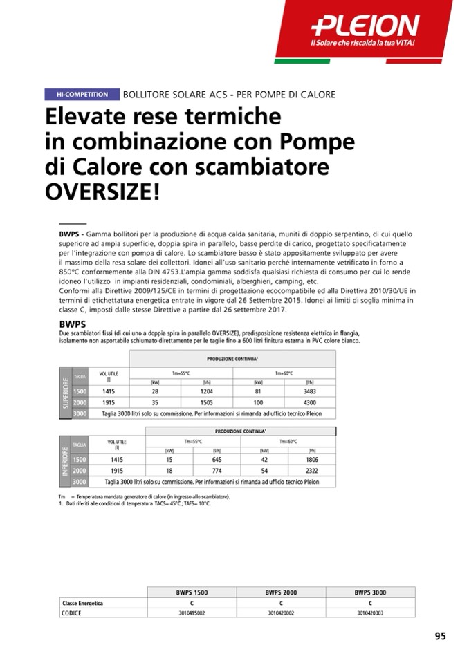 BWPS - Gamma bollitori per la produzione di acqua calda sanitaria, muniti di doppio serpentino, di cui quello