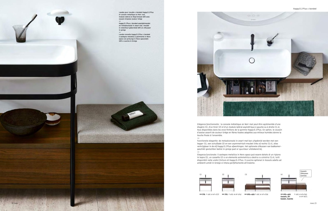 verkrijgbaar in de elf Happy D.2 Plus-afwerkingen. Het optionele zitkussen van badkamer-