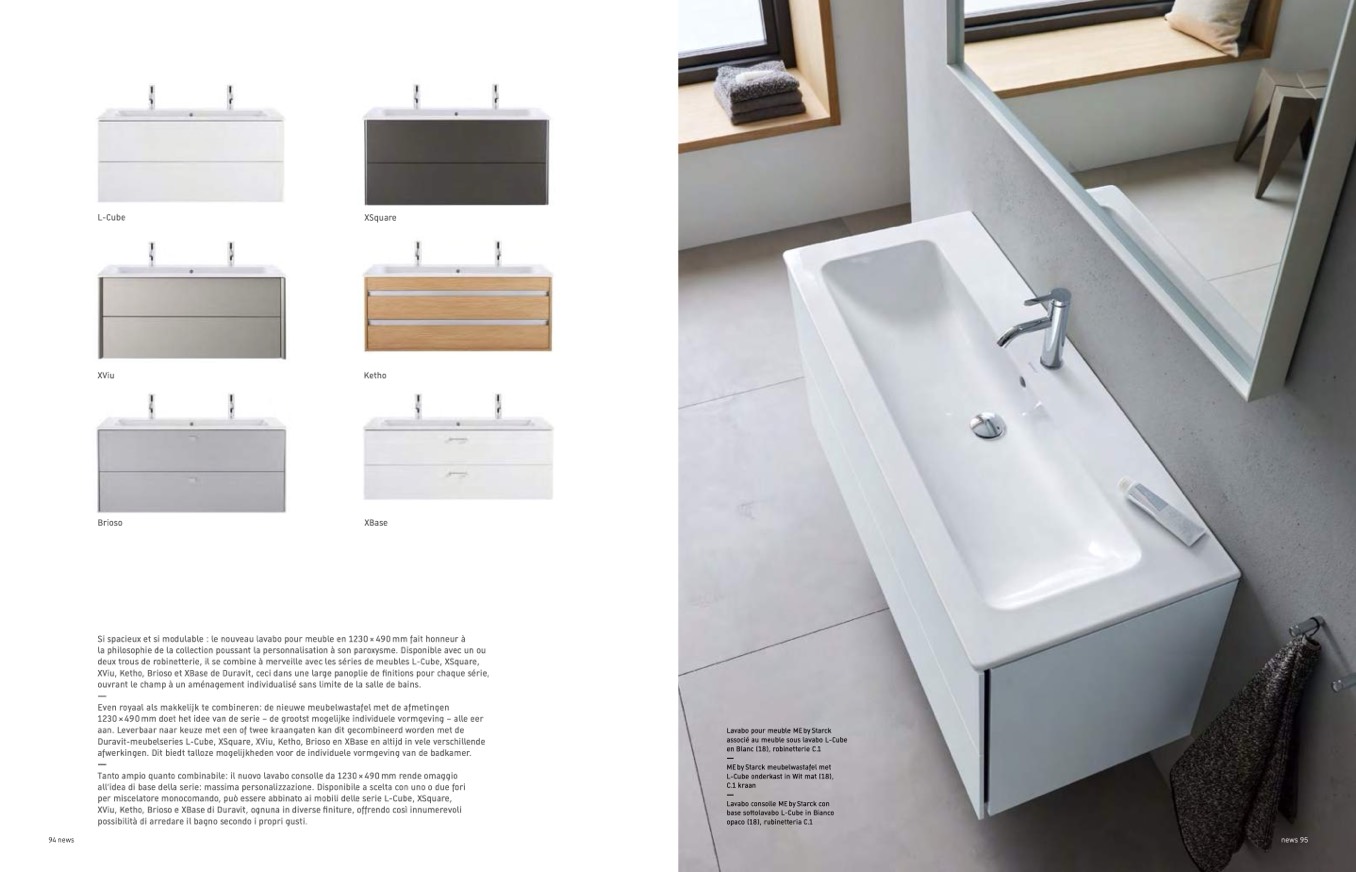 XViu, Ketho, Brioso et XBase de Duravit, ceci dans une large panoplie de finitions pour chaque série,