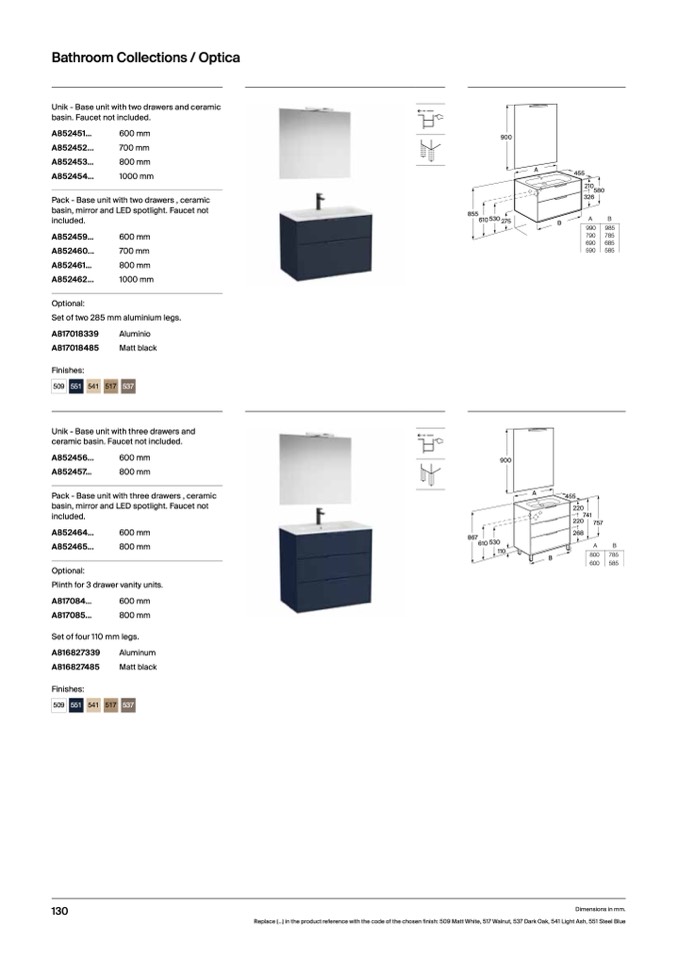 Replace (...) in the product reference with the code of the chosen finish: 509 Matt White, 517 Walnut, 537 Dark Oak, 541 Light Ash, 551 Steel Blue